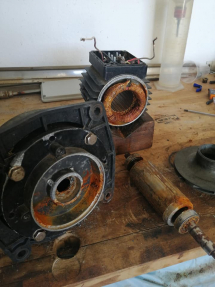 This pump we received in our workshop, needed to dry the motor, to replace the ball bearings, the mechanical seal, and to clean the rotor.