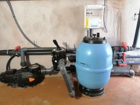 In this pool we installed the pool pump, sand filter (with crystals), pipes and control box.
