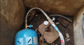 Reinflamos el antiguo calderín, reinstalamos la bomba en el pozo, conectamos los hilos al antiguo cuadro de comando, abrimos un sector del riego, se enciende la bomba y llega una terrible sorpresa: