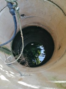 El pozo era de gran diámetro y poca profundidad. Nos encontramos con un grupo de presión averiado y oxidado compuesto de una bomba centrifuga (no autocebante) y un presscontrol.